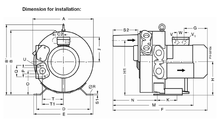 德冠品牌高壓風(fēng)機(jī)產(chǎn)品尺寸表: